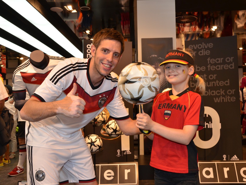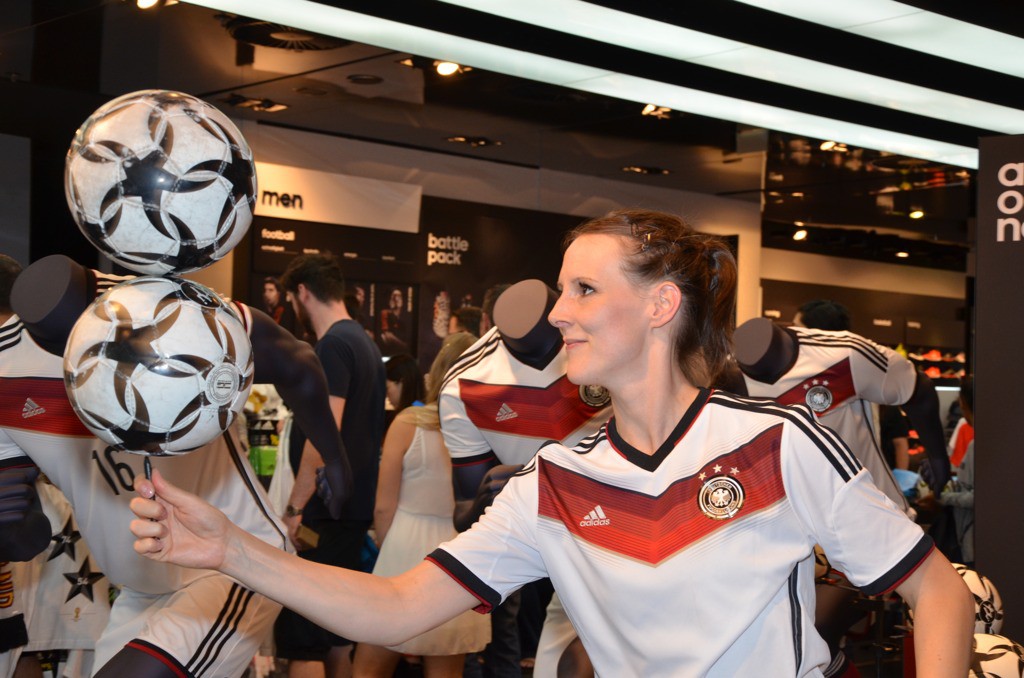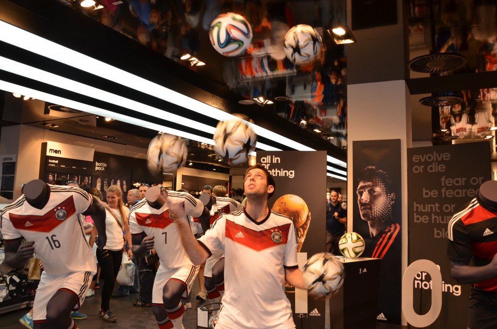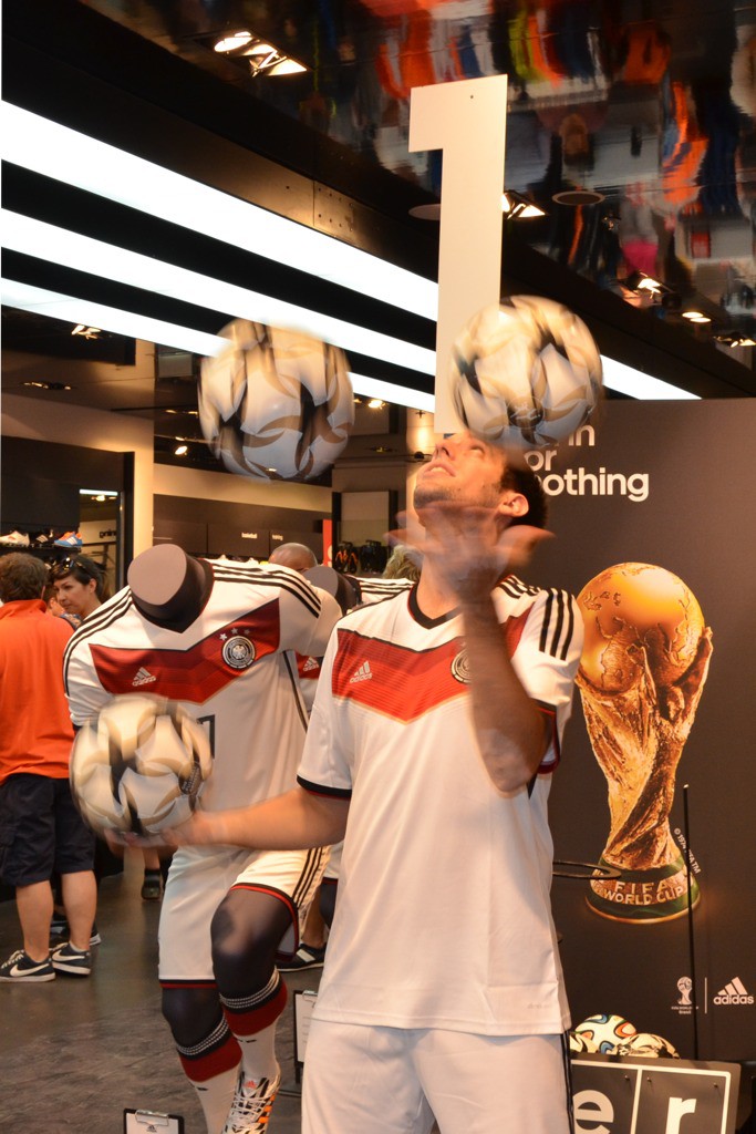Live-Shows am 10. und 11. Juli 2014 im adidas Store Nürnberg zum WM Finale „Deutschland vs. Argentinien“. Die Fußballartisten sorgen zudem dafür, dass Sat.1 Bayern in den Abend-Nachrichten von der Aktion berichtet.